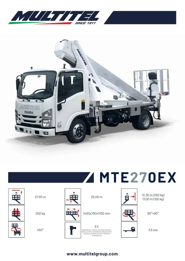 Ved en horisontal rækkevidde på 17m, er kapaciteten i kurven 100kg, og stiger til 250kg ved 12.3m. horisontalt.